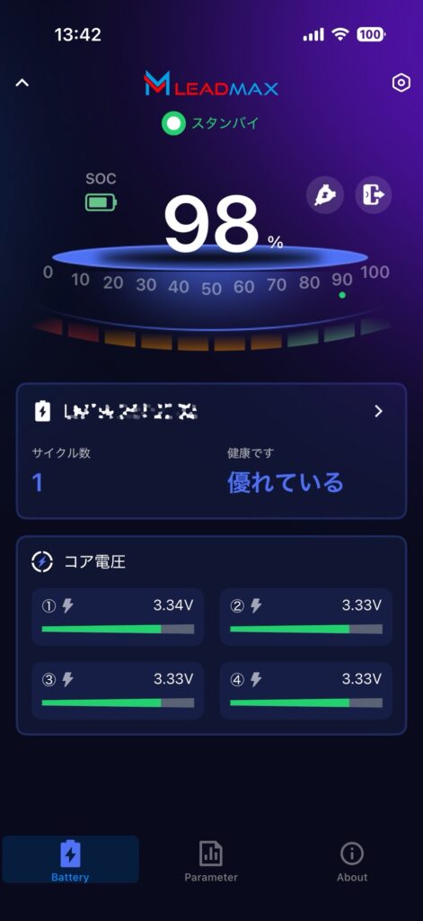 このバッテリーはスマートフォンのアプリでバッテリーの状態がわかるのです。これは良い。バッテリー上がる前に対処可能。また、上がっても完全に放電せずにエンジンかけるぐらいの電力は残しておくらしい。